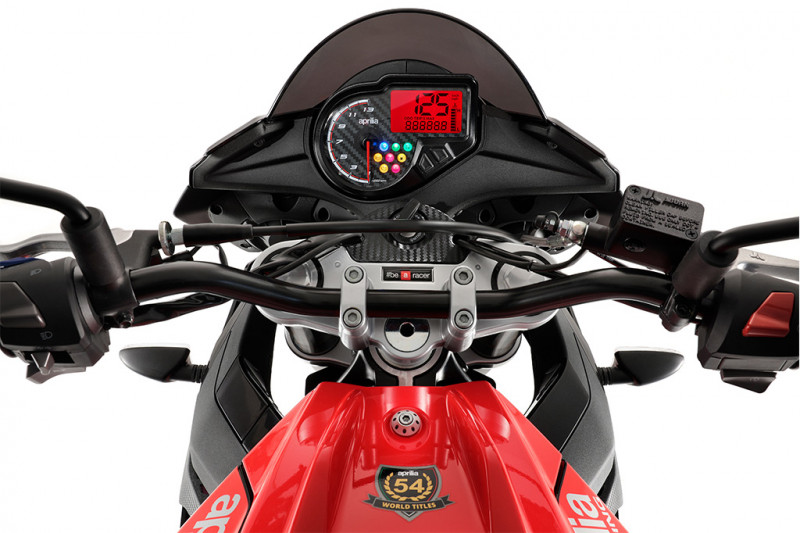 Son moteur monocylindre de 125 cm3 développe une puissance et un couple remarquables pour sa catégorie. La Tuono 125 est légère et agile, ce qui vous permet de la piloter avec précision et de vivre des sensations fortes à chaque instant. Grâce à l'optimisation de la thermodynamique et à une combustion plus efficace, la nouvelle Tuono 125 consomme moins de carburant que sa devancière. En outre, le nouveau calculateur Marelli MIUG 4 assure une gestion électronique précise et performante du moteur qui garantit un fonctionnement optimal dans toutes les conditions.