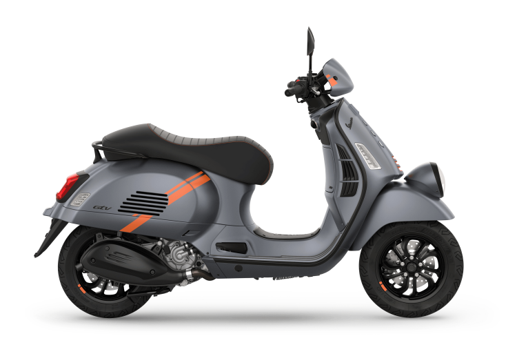 Démarquez vous de la foule avec le caractère sportif et audacieux de la Vespa GTV. Elle incarne l’esprit de voyage, alliant modernité, classicisme et intrépidité. Dotée de nombreuses caractéristiques techniques pour faciliter la conduite, elle offre également beaucoup d’émotions avec le moteur le plus puissant jamais monté sur une Vespa. Le style de la Vespa GTV se caractérise par une finition noir mat et des graphismes orange contrastés sur les côtés. Disponible en deux finitions mat : Gris Travolgente et Beige Avvolgente